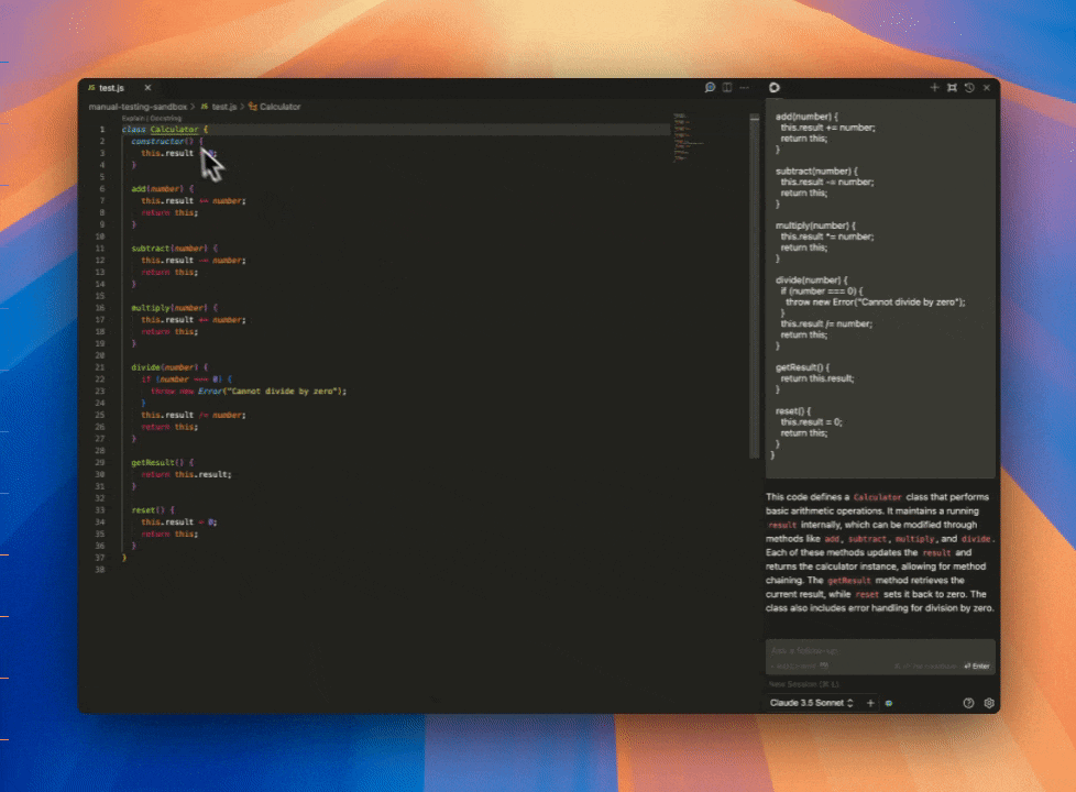 Quick Actions (experimental) display CodeLens buttons above functions and classes, letting you explain, add docstrings, or take custom actions with a single button click