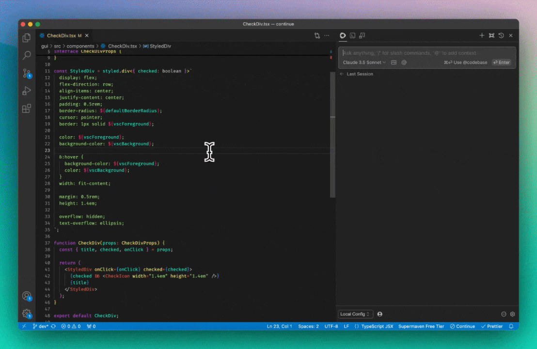 First, we give a system prompt to the LLM for all chat messages so that it knows to output “lazy” comments whenever it is editing a piece of code. These have to follow a particular structure such that no code is unaccounted for. In this example, the LLM generates the following, successfully saving tokens by not repeating CheckDivProps and StyledDiv: