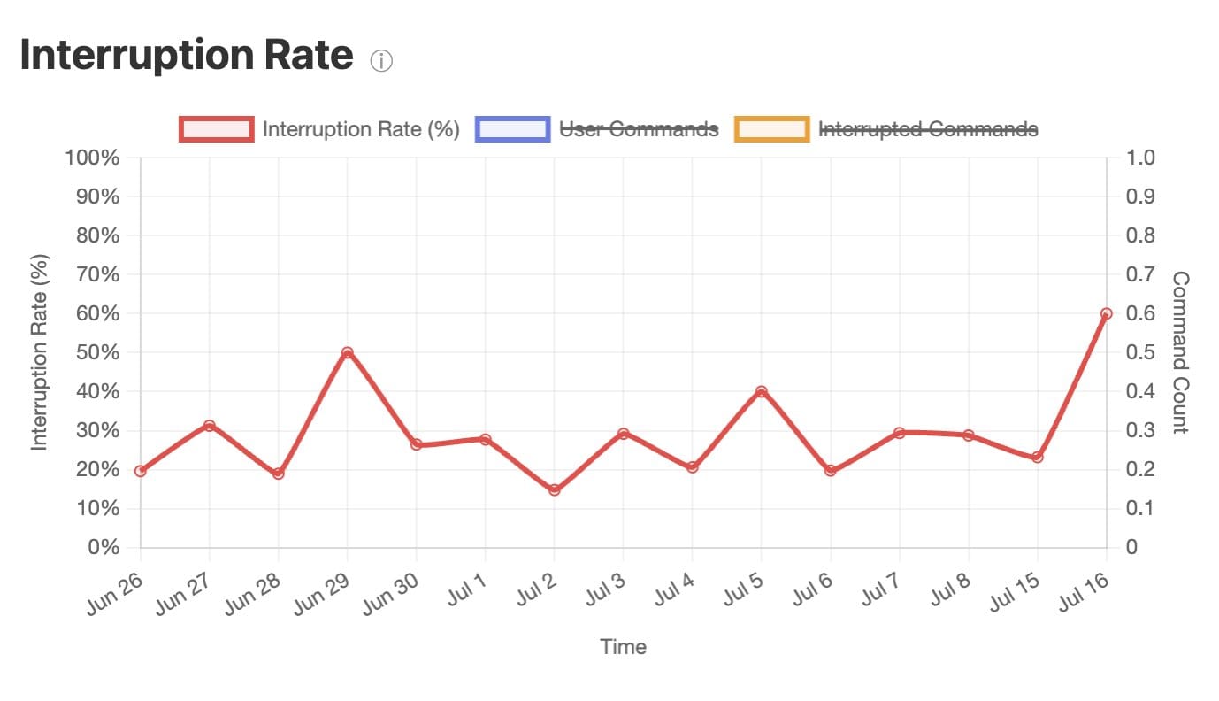 Her data tells a compelling story. After analyzing 1,746 commands with Claude Code (Anthropic's command-line AI tool), she found herself interrupting or correcting the AI 24.5% of the time. But instead of just accepting this as "how AI works," she's treating it like those early CI teams treated build times—as a key metric to measure, analyze, and systematically improve.